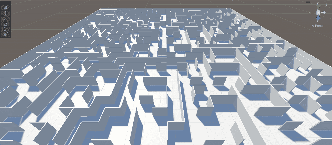 Starting out, one of the first efforts was to learn to create a maze in Unity to help with designing the level. In an early build I worked through a tutorial for generating a random maze, which looked nice. While the maze had a nice appearance, it would make the objectives of the game overly complicated as the level is randomly generated at the start of each run of the game.